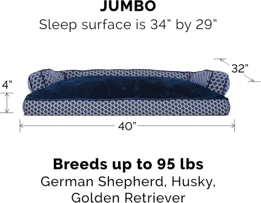 Pillow Dog Bed for Large Dogs W/ Removable Bolsters & Washable Cover - Plush & Woven Decor Comfy Couch Sofa - Diamond Blue, Jumbo/Xl