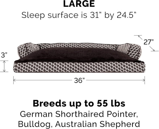 Pillow Dog Bed for Large/Medium Dogs W/ Removable Bolsters & Washable Cover - Plush & Woven Decor Comfy Couch Sofa - Diamond Brown, Large
