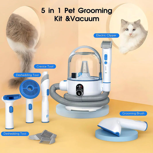 Pet Grooming Vacuum Kit, 5 In-1 Pet Grooming Vacuum Suction 99% Pet Hair for Dogs Cats, 3L Large Capacity Dust Cup, Quiet Pet Vacuum Groomer for Shedding Pet Hair, Home Cleaning