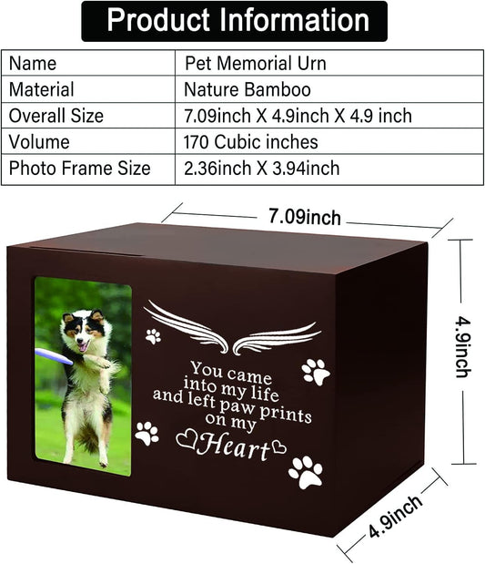 Pet Memorial Keepsake - Cat or Dog Urn with Photo Frame, Wooden Bamboo Urn for Memorial Gifts