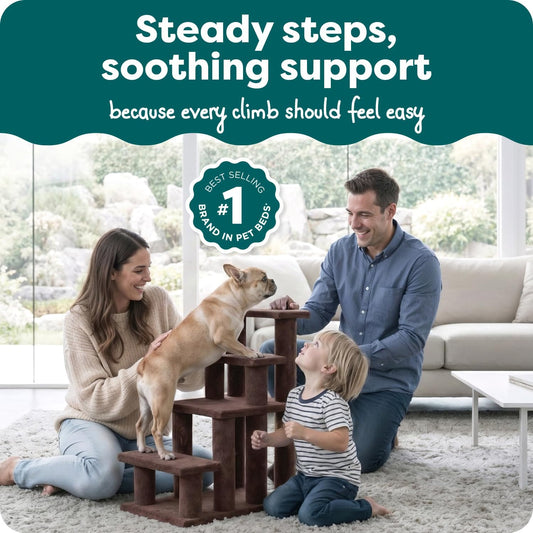 Steady Paws Multi-Step Pet Stairs for High Beds & Sofas - Brown, 4-Step