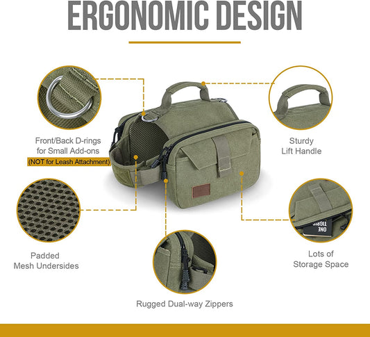 Dog Pack Hound Travel Camping Hiking Backpack Saddle Bag Rucksack for Medium & Large Dog (Ranger Green, Large)