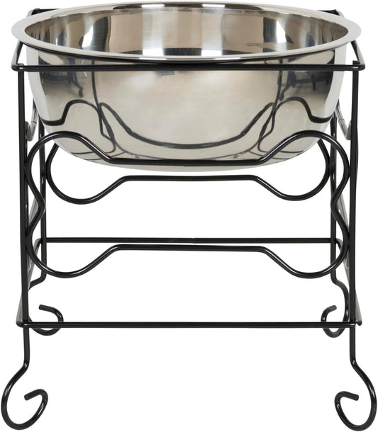 Elevated Stainless Steel Dog & Cat Bowl with Black Wrought Iron Stand, 10-Inch (10.75 Cups)